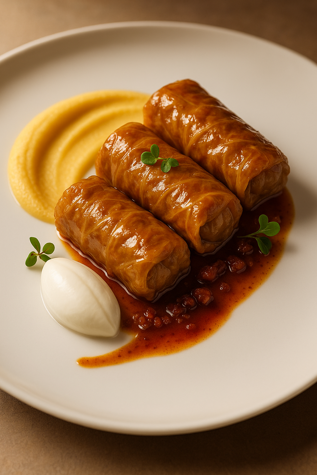 - Saremale – stuffed cabbages with pork, sauerkraut, and grape leaves topped with cultured cream (GF, Contains: dairy)